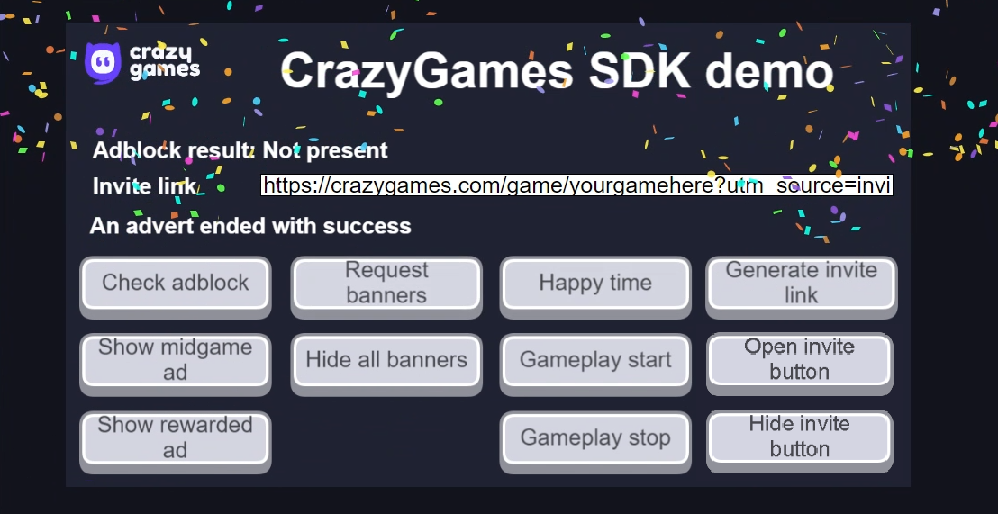 Display on CrazyGames website a popup containing the invite link with a copy button. This is very useful in a multiplayer game to give a friend the possibility to join a session quickly.